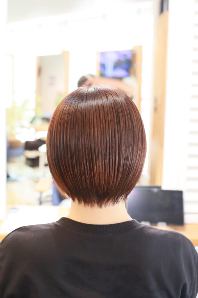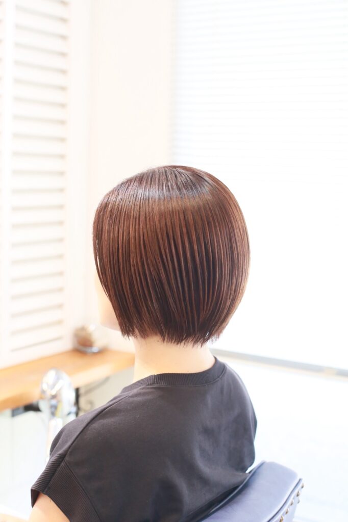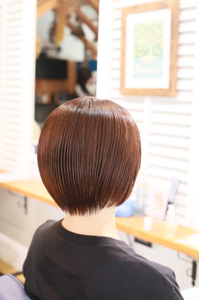 毛先まで丁寧にカットし、シルエットにこだわったショートカットは、後頭部の丸みや首元のくびれがとても綺麗に見えるのが特徴。