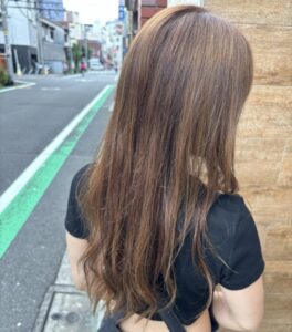 毛先までツヤ感が出て、スタイル全体が軽やかに見えます。