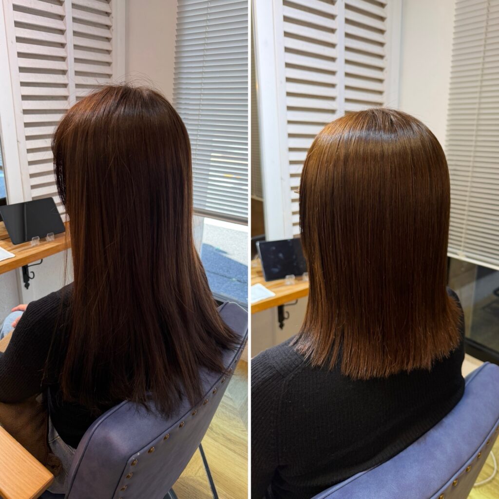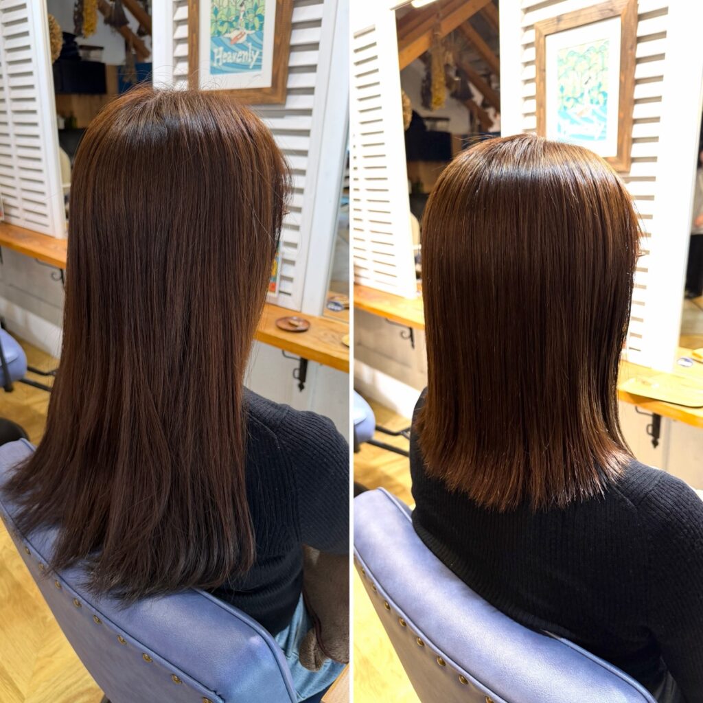 実際にリビーチで“髪質改善ストレート”を施術したらお客様のビフォー、アフターがこちら。