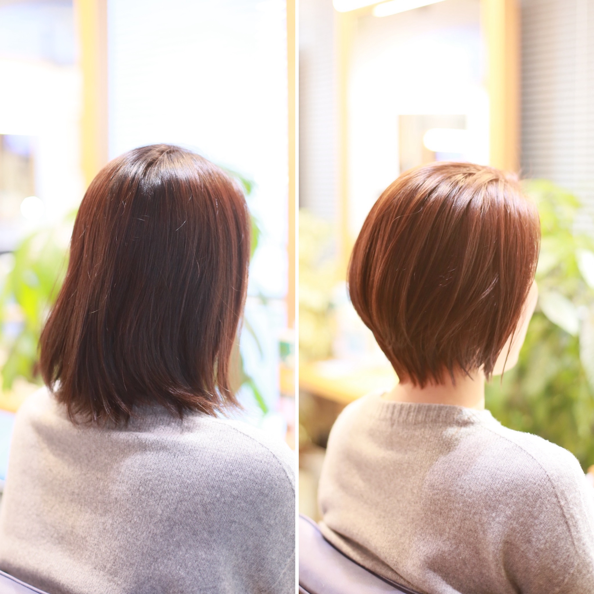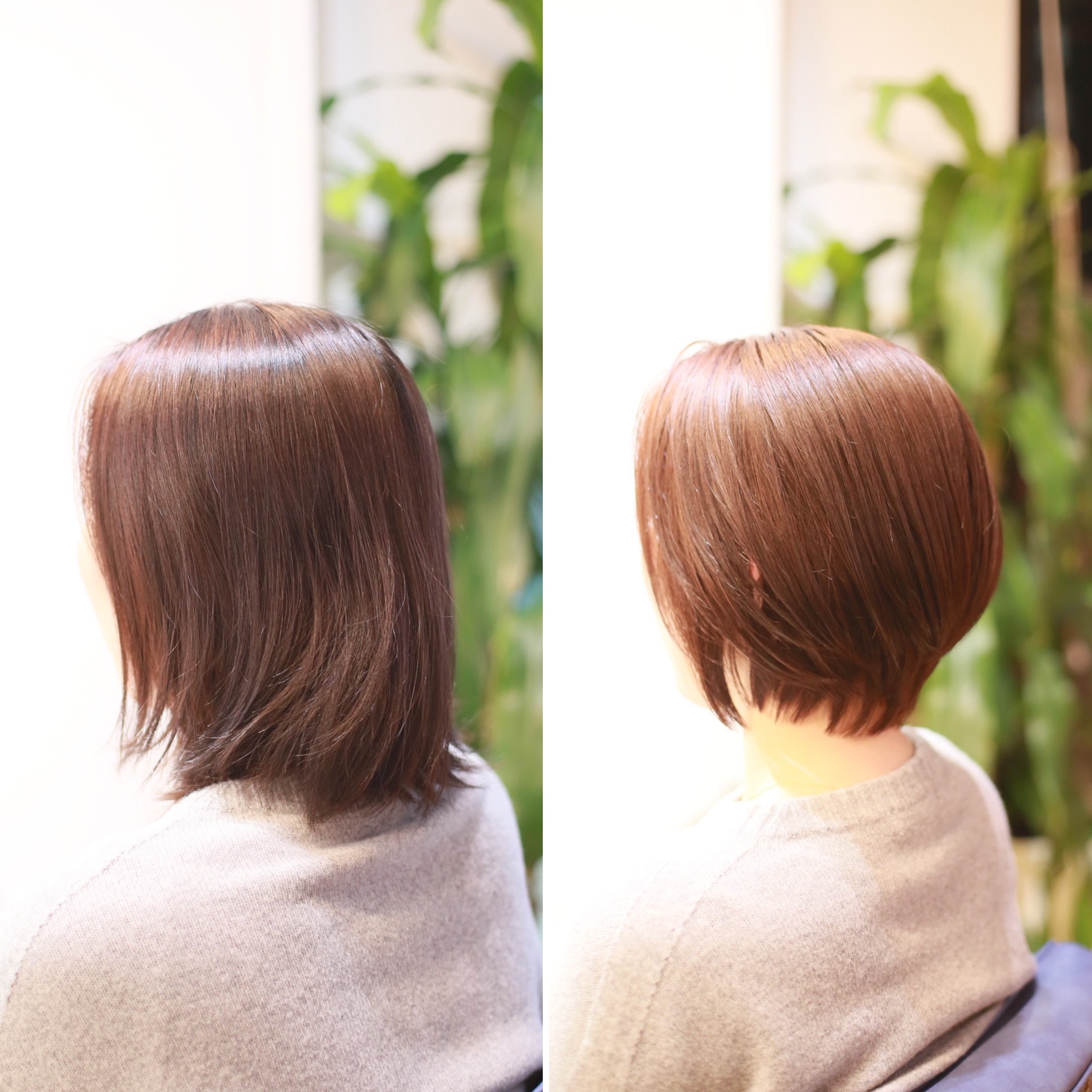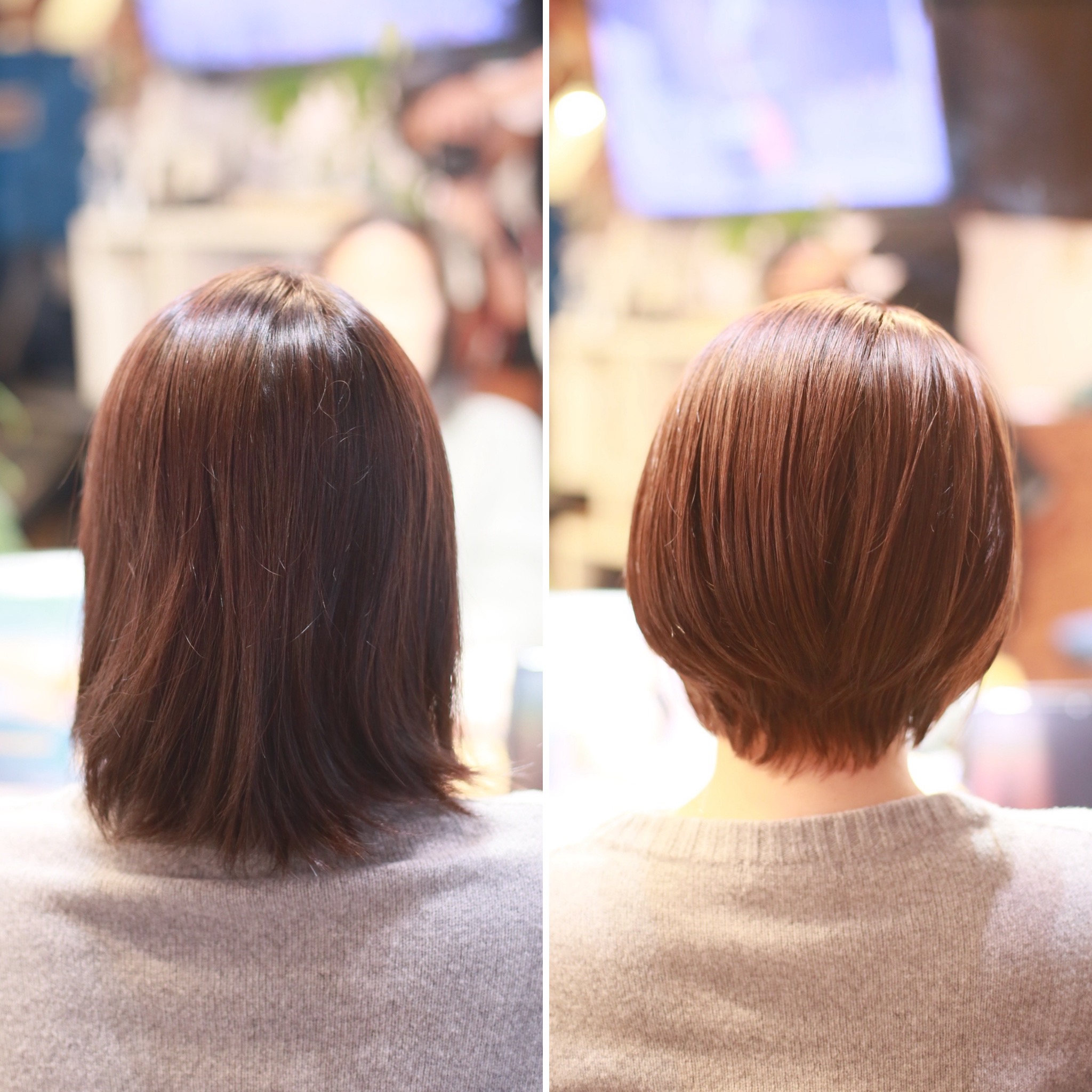 今回のお客様は、ミディアムレングスからショートボブへスタイルチェンジ。