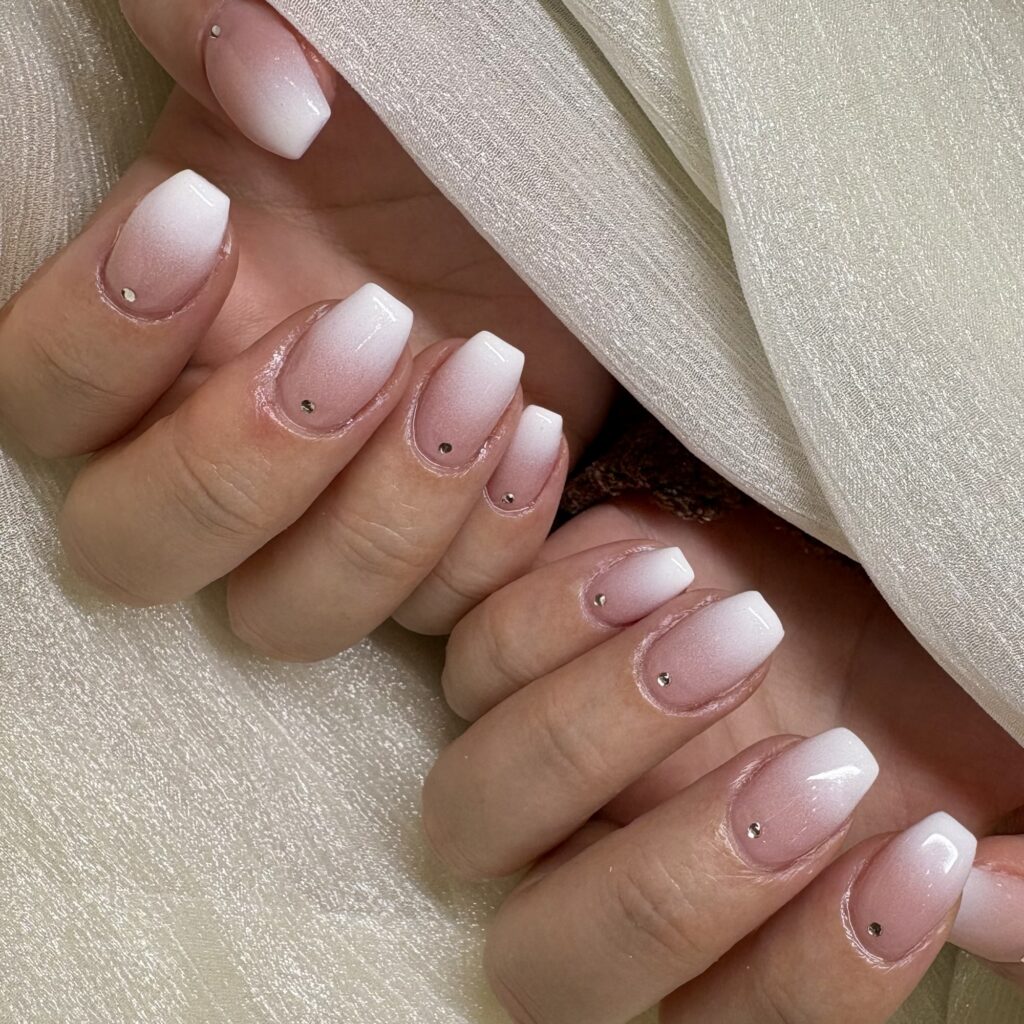 ナチュラルな血色感ピンクに、先端ホワイトのグラデーション♪