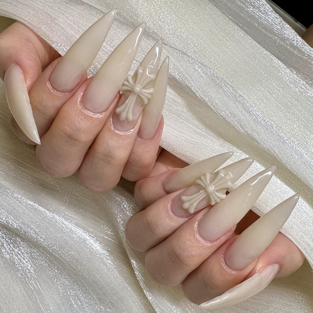 大人上品なロングスティレットネイル。