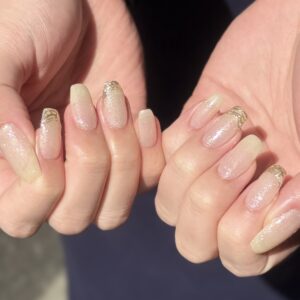 癖フレンチ 投稿日: 2026年3月17日2026年3月12日 投稿者: urbansea.nail.eye@gmail.com こんにちは!アーバンシー赤羽店の栗原です♪ 本日ご紹介いたしますお客様ネイルデザインです! サンプルからお選びいただき、カラー変更! 上品なラメカラーにポイントでミラーで癖フレンチデザイン✨ 最近ピンク系が多かったそうで、今回は気分を変えて白っぽく!
