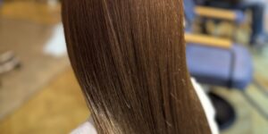 根元は必要な部分のみしっかりとくせを伸ばし、毛先にはトリート …